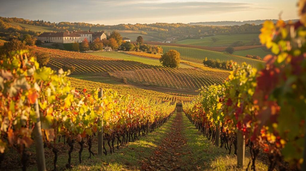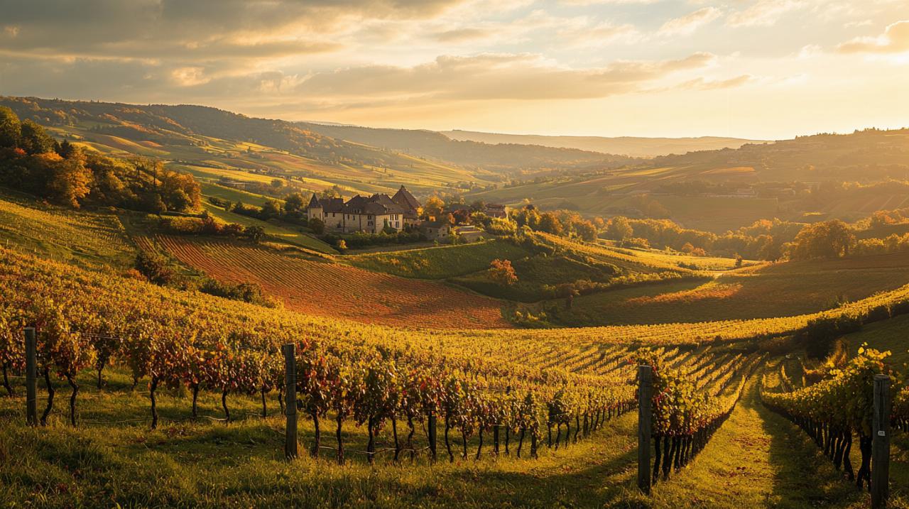 Le vignoble du Beaujolais, niché entre la Bourgogne au sud et la vallée du Rhône au nord, constitue un territoire viticole d’exception qui s’étend sur plus de 22 000 hectares. À moins de trente minutes de Lyon, cette région historique abrite des domaines emblématiques qui perpétuent un savoir-faire ancestral et incarnent l’excellence d’une viticulture respectueuse de son terroir. Des châteaux séculaires aux exploitations familiales reconnues mondialement, le Beaujolais offre une diversité de domaines qui font la fierté d’un vignoble riche de douze appellations et dix crus réputés.